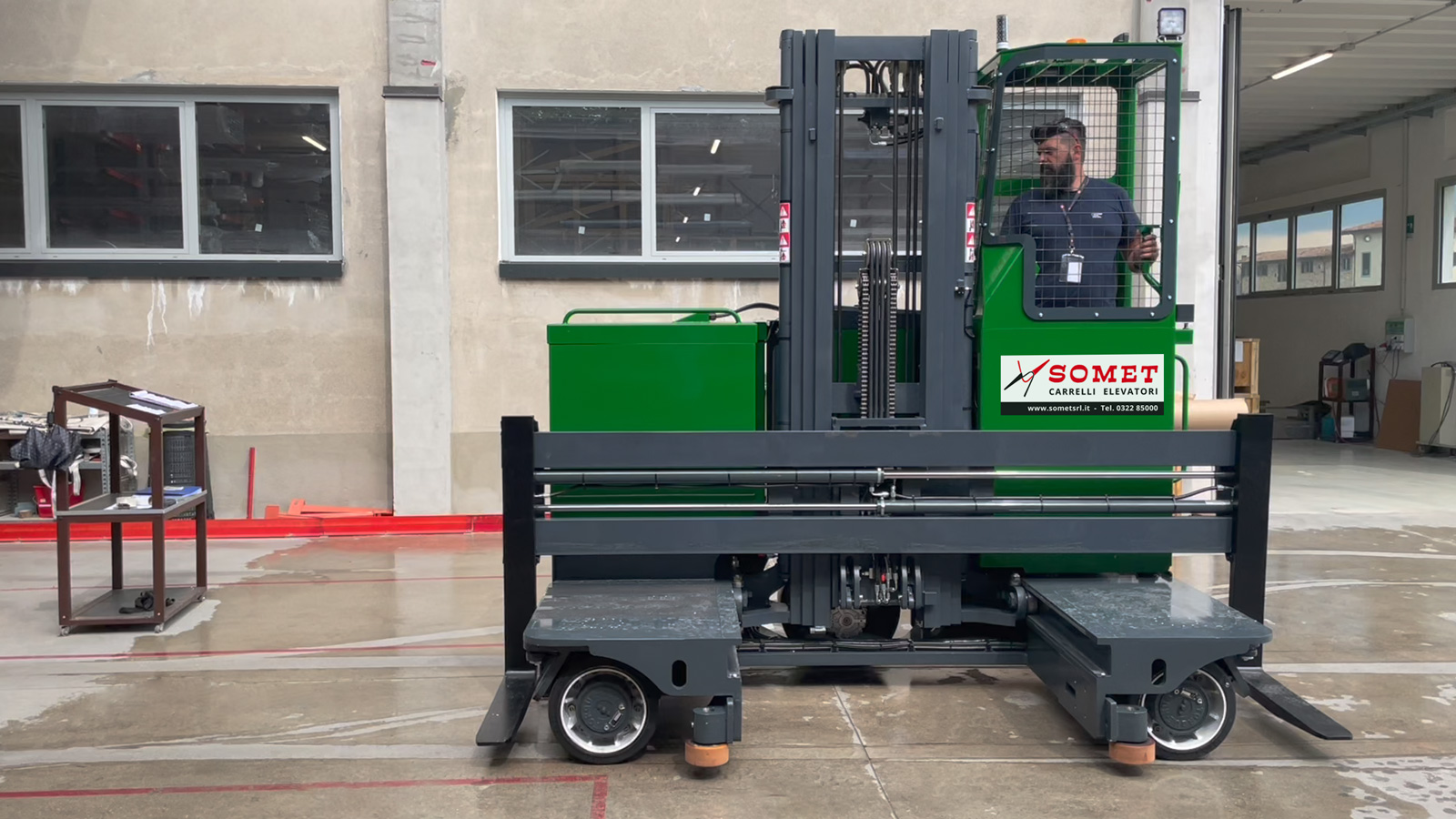 Il mezzo che vediamo in questo video è stato configurato su misura, dopo aver visionato il magazzino di Pronema. Come abbiamo appreso, l'esigenza era quella di sostituire il carrello laterale utilizzato in precedenza pur senza stravolgere l'operatività, individuando un mezzo idoneo a manovrare negli stessi spazi migliorandone la gestione.