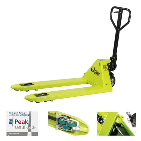 Progettato per ridurre fortemente le emissioni acustiche anche nelle peggiori condizioni, come pavimenti sconnessi e piastrellati, questo transpallet è ideale per soppalchi, aree residenziali e in supermercati.